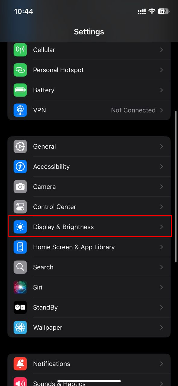 Step 1: Open your iPhone Settings and select "Display & Brightness"