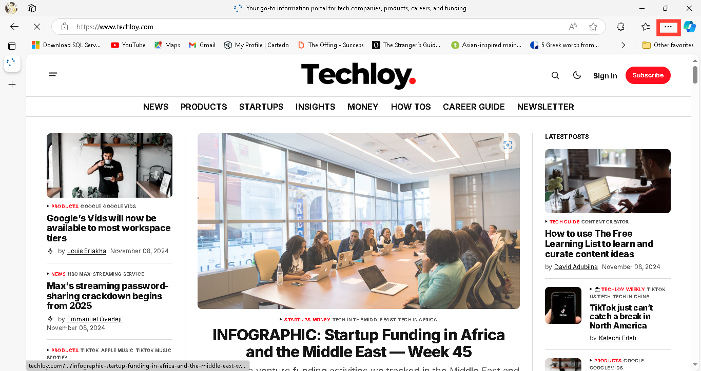 Launch Microsoft Edge on your PC. In the the window’s top-right corner click on the three-dot menu.