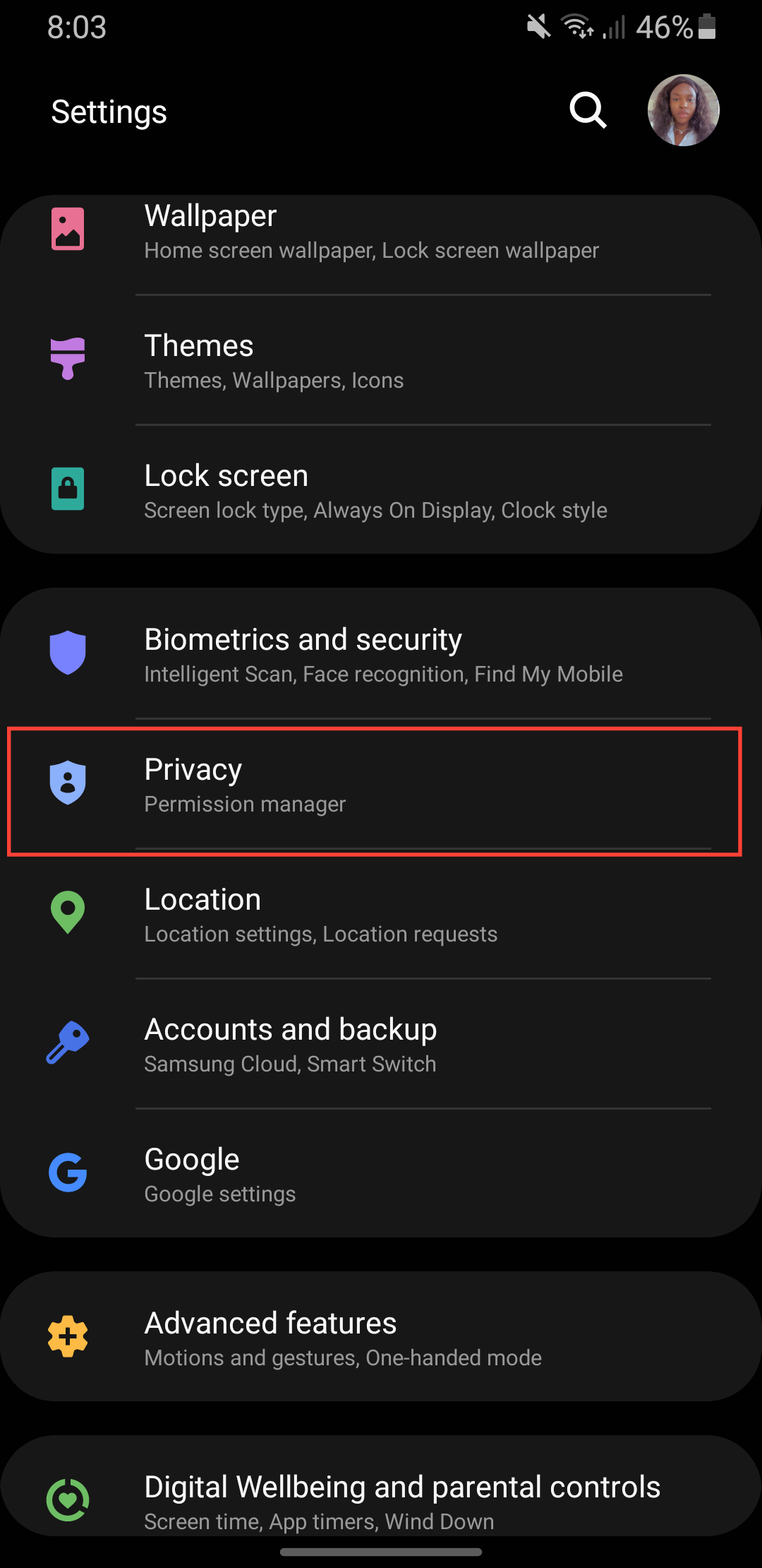 Step 1: Go to settings on your Device and select Privacy. You may see it on your device as Security and Privacy.