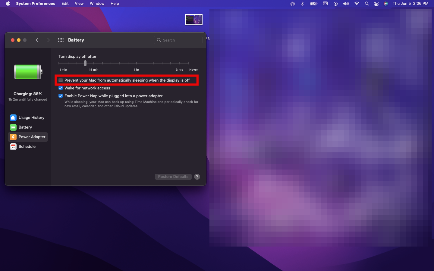 Step 5: Tick the box next to Prevent computer from sleeping automatically when the display is off