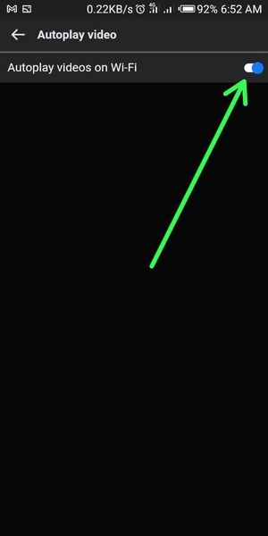 4. Toggle the auto-play button to switch it off, To enable Never Autoplay Videos.