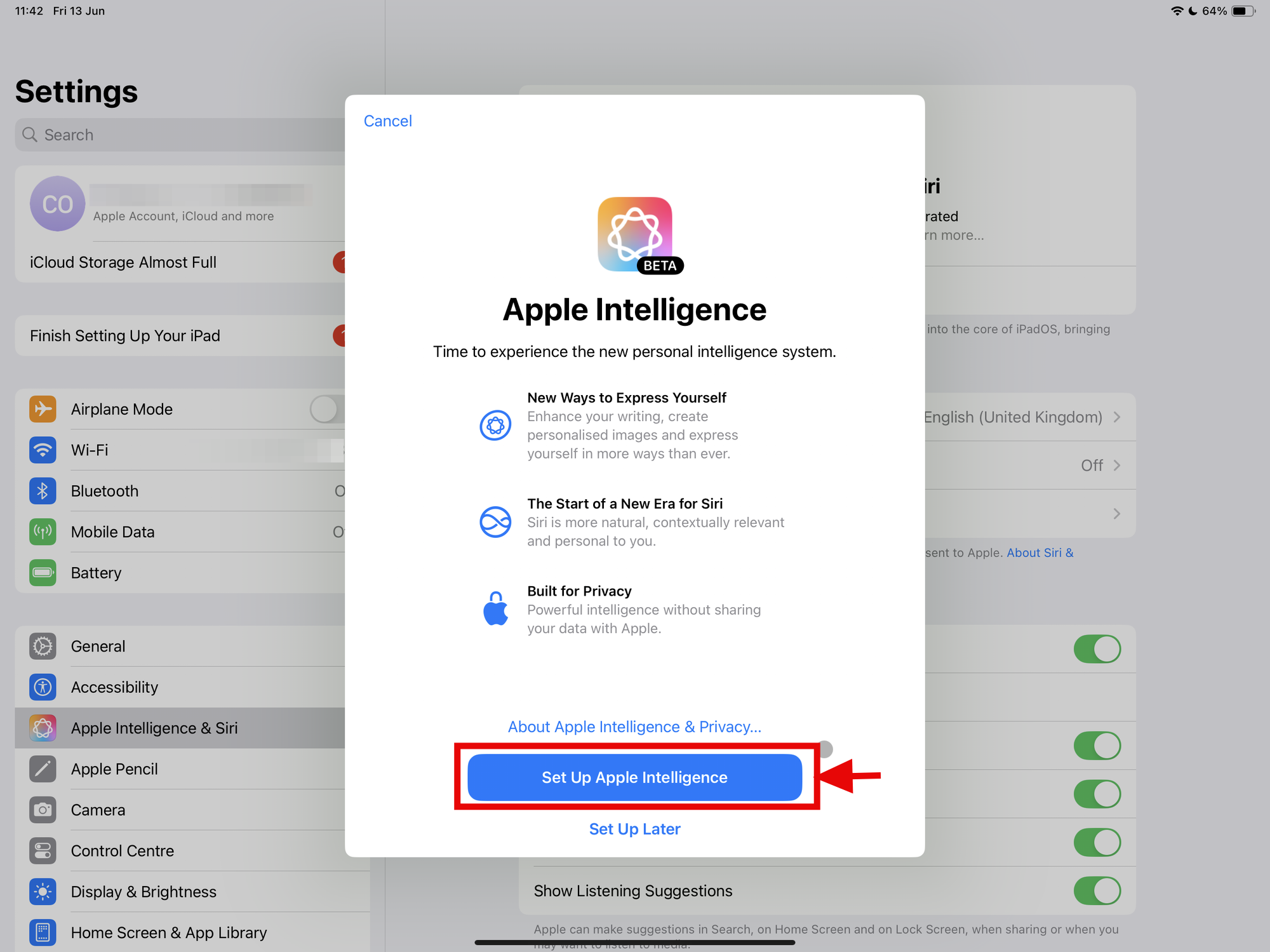 Step 4: Select Set Up Apple Intelligence (if you haven't set it up before)