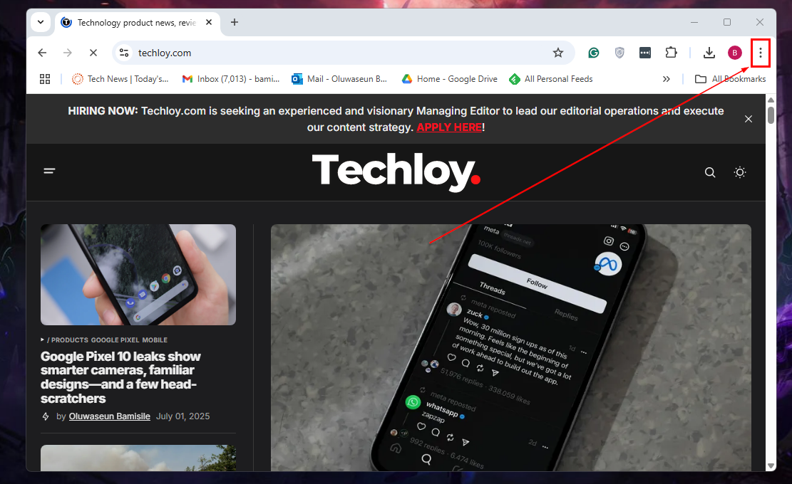 Step 1: Click the three-dot menu in the upper-right corner of the Chrome browser