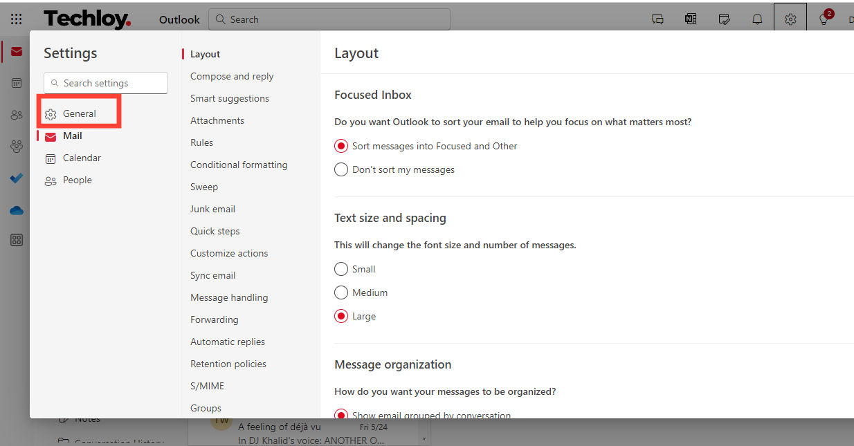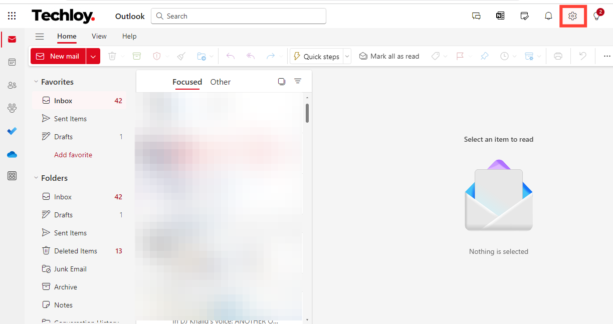 Click on the "gear" icon at the top-right corner of the Outlook interface.
