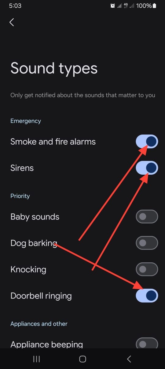Step 8: Toggle on the sound(s) you want your device to recognize.