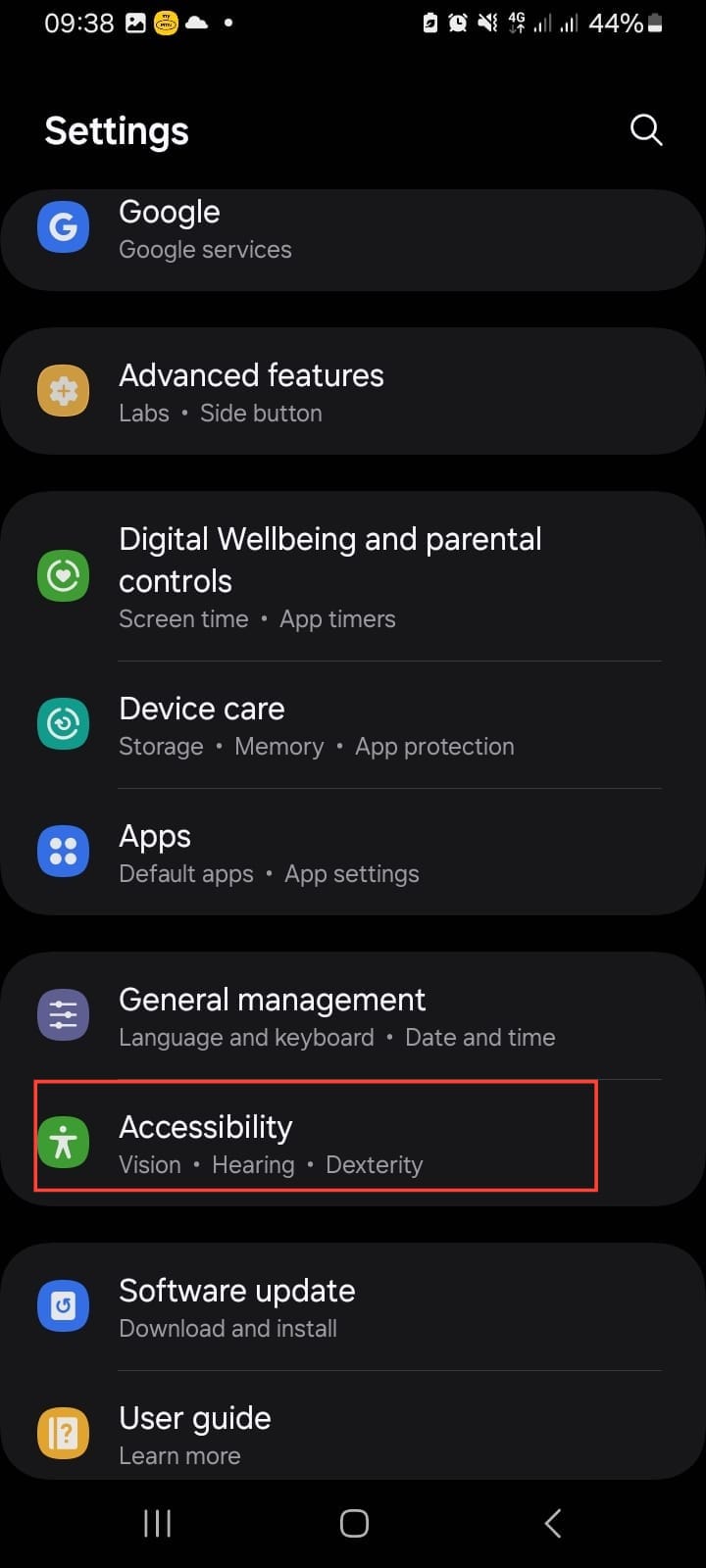 Step 1. Go to "Settings" on your phone, scroll down to "Accessibility" and tap on it. This section contains features designed to improve the usability of your device.