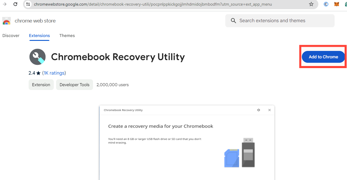 - Step 1: Download the Chromebook Recovery Utility extension from the Chrome Web Store on your working computer.