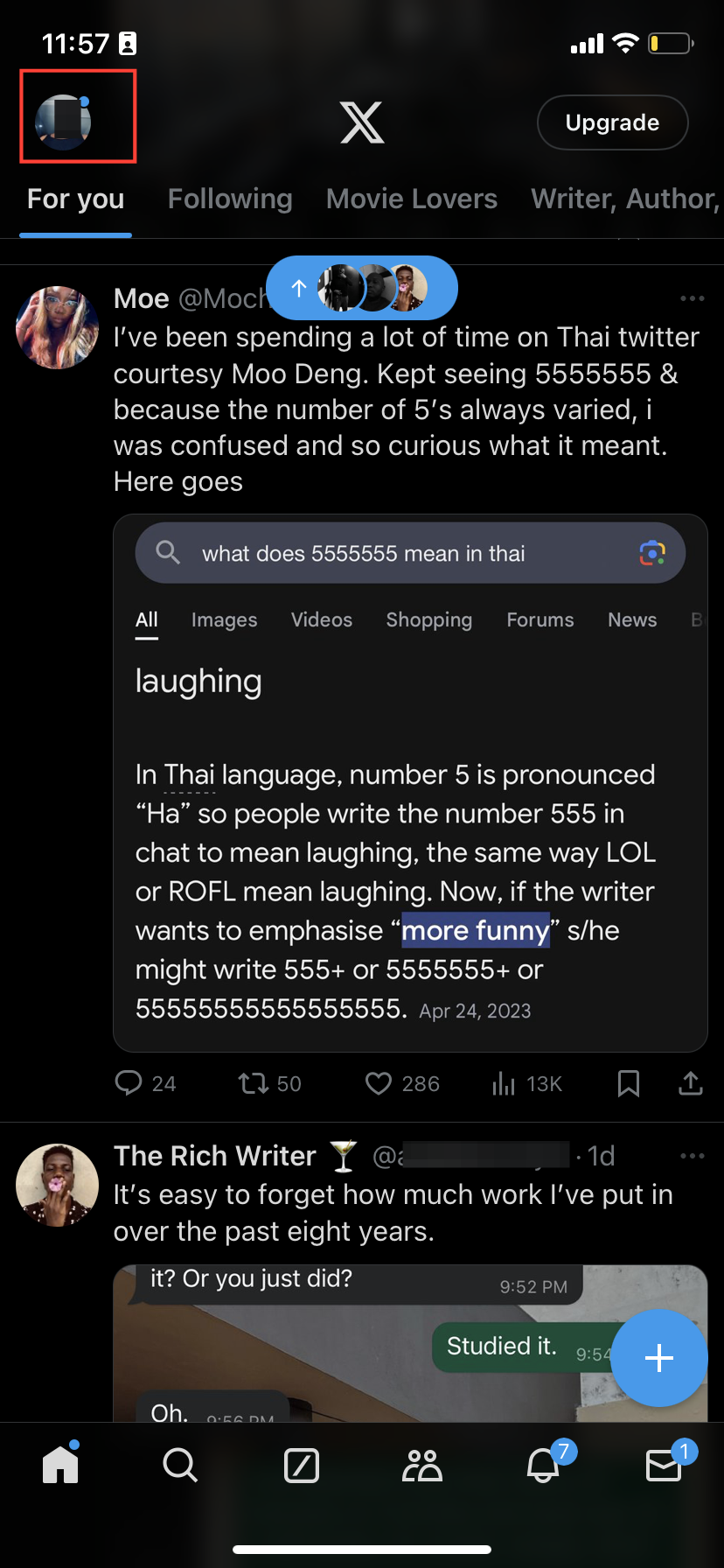 Step 1: Open X App. Then, tap your profile icon in the top-left corner