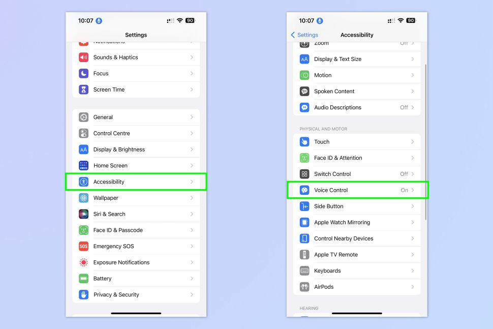 - Go to Settings, tap on Accessibility then tap Voice Control.