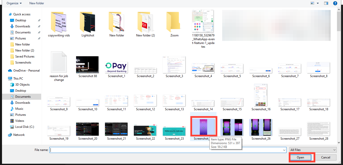 - Select an image you want to upload and tap "Open"