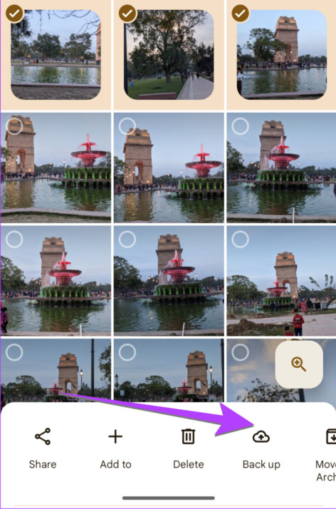 3. If you don't see the cloud icon, tap the three-line button in the top-right corner of the app and select Back up Now to upload the photo or video to Google Photos.