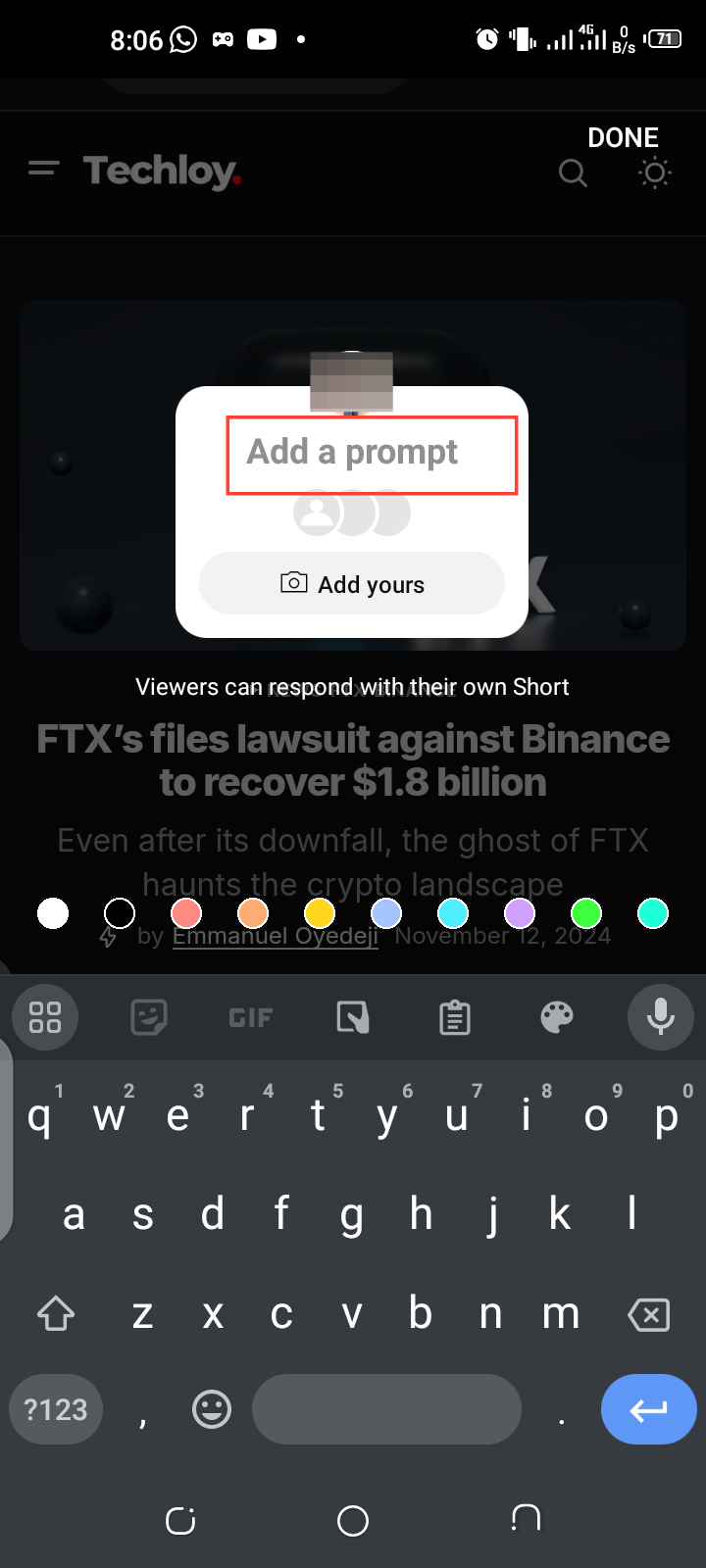 How to Use the "Add Yours" Sticker on YouTube Shorts