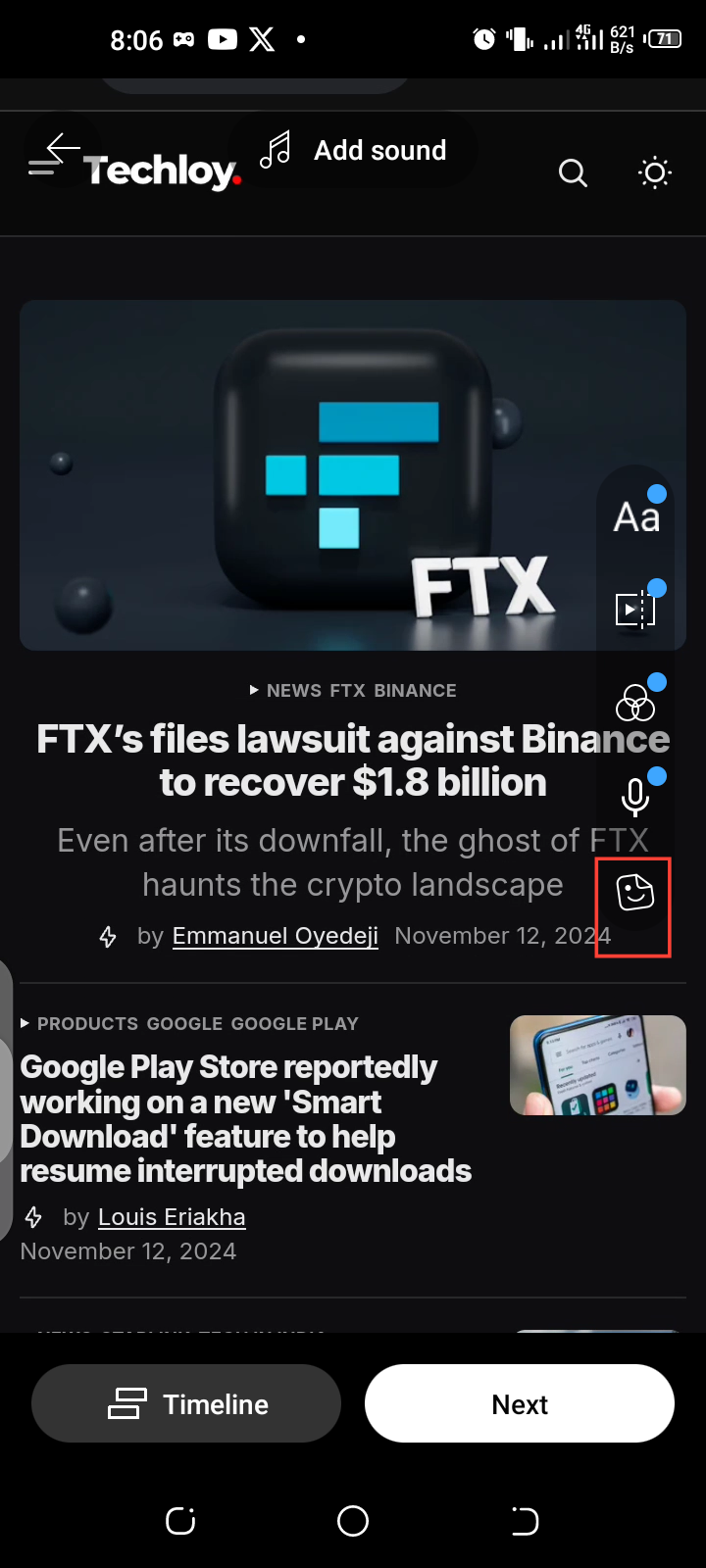 Step 4. On the edit page, tap the "Sticker" icon and select "Add Yours" Sticker