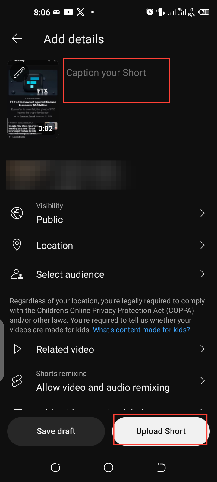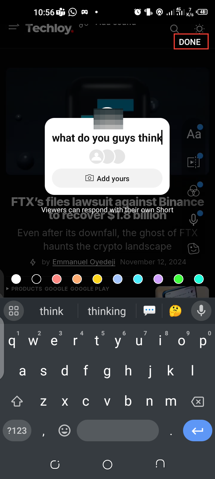 Step 6. Once you’ve customized the sticker, tap "Done". Add any additional details like hashtags or captions, then hit "Upload short".