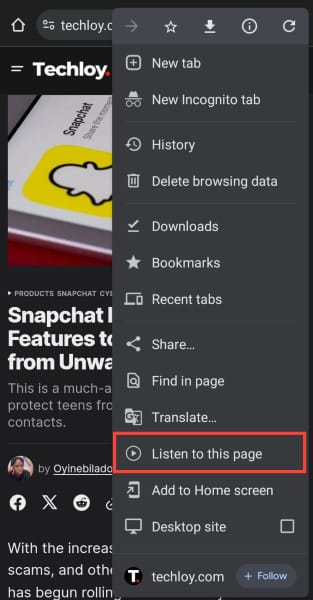 - Look for and select Listen to this page.