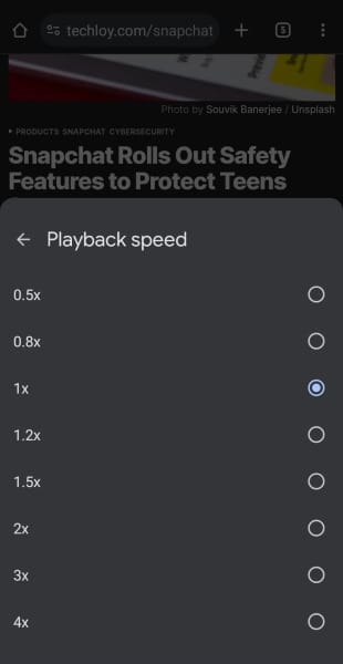- Select Playback Speed and adjust it to your preference.
