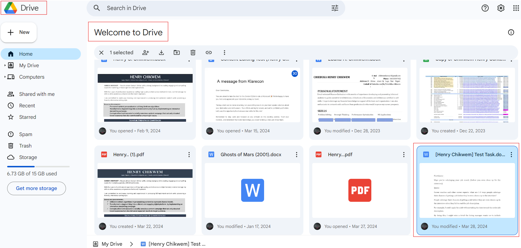 Go to your Google Drive and click on any Google document you want to review or edit. You can upload a document to your Google Drive if you don't have one there.