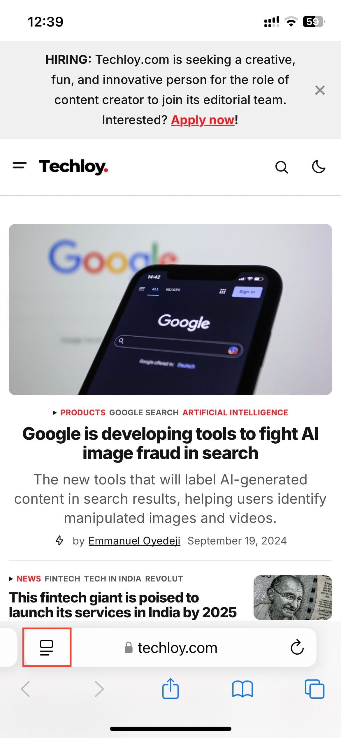 - On your newly updated iOS device, open the Safari app and go to the website where you'd like to hide distracting elements. Once the page loads, tap the “Page Menu” at the left of the address bar.
