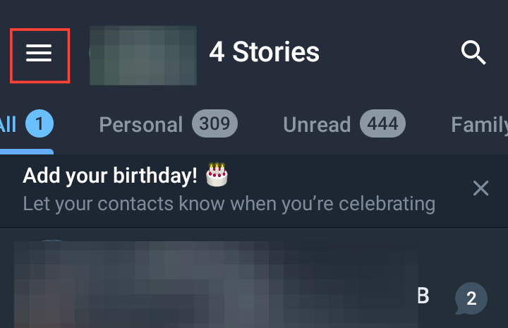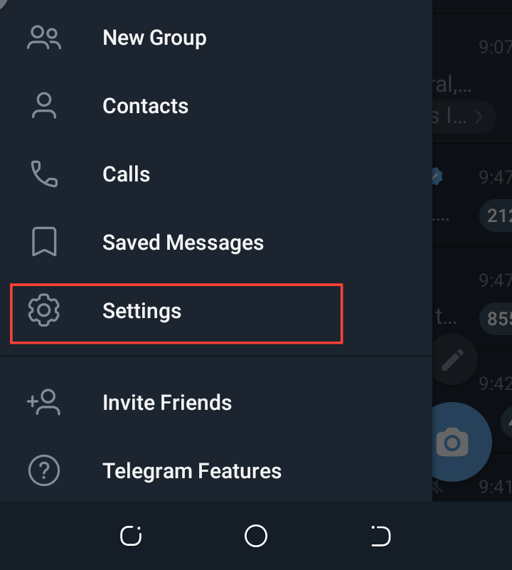 Step 1: Open your Telegram app and tap the grid icon in the top left corner to open the main menu.