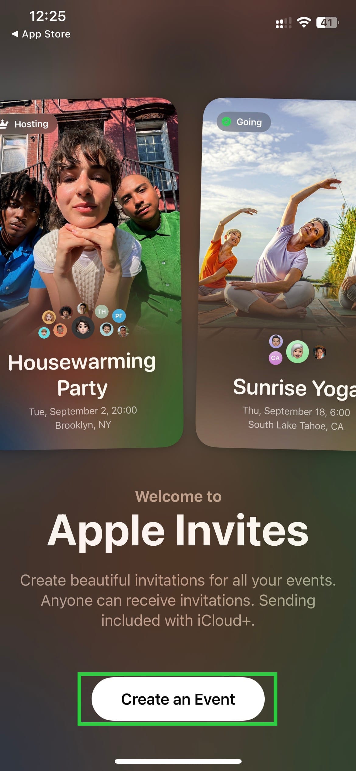 Step 1: Open the Apple Invite App and Tap Create Event.