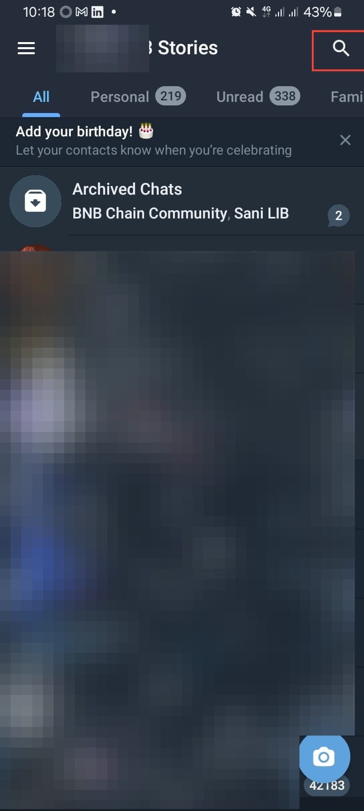 Step 1. Open your Telegram app and tap on the search icon (🔍) at the top right corner of the screen.