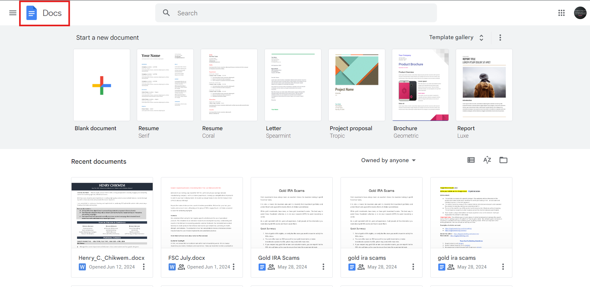 Step 1: Launch your Google Chrome browser and navigate to Google Docs.