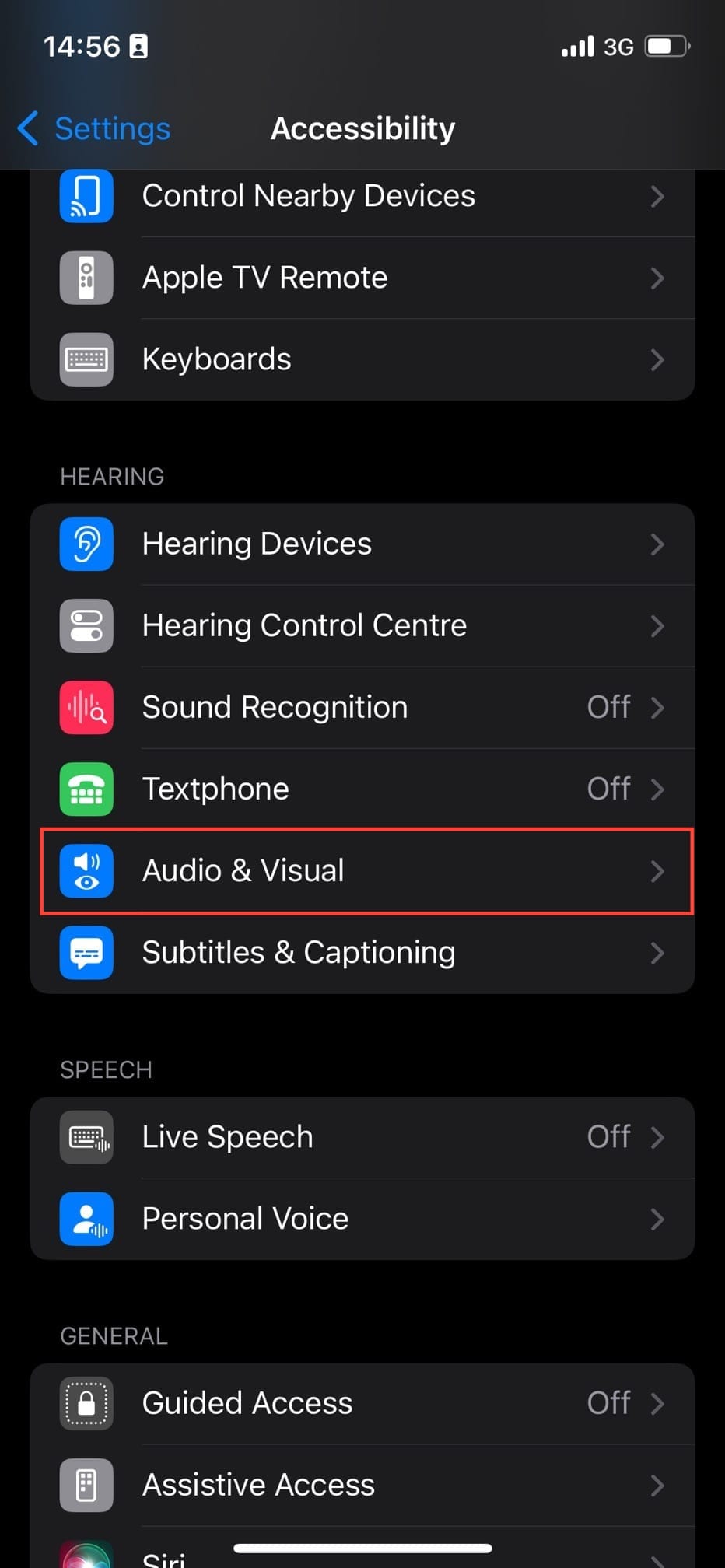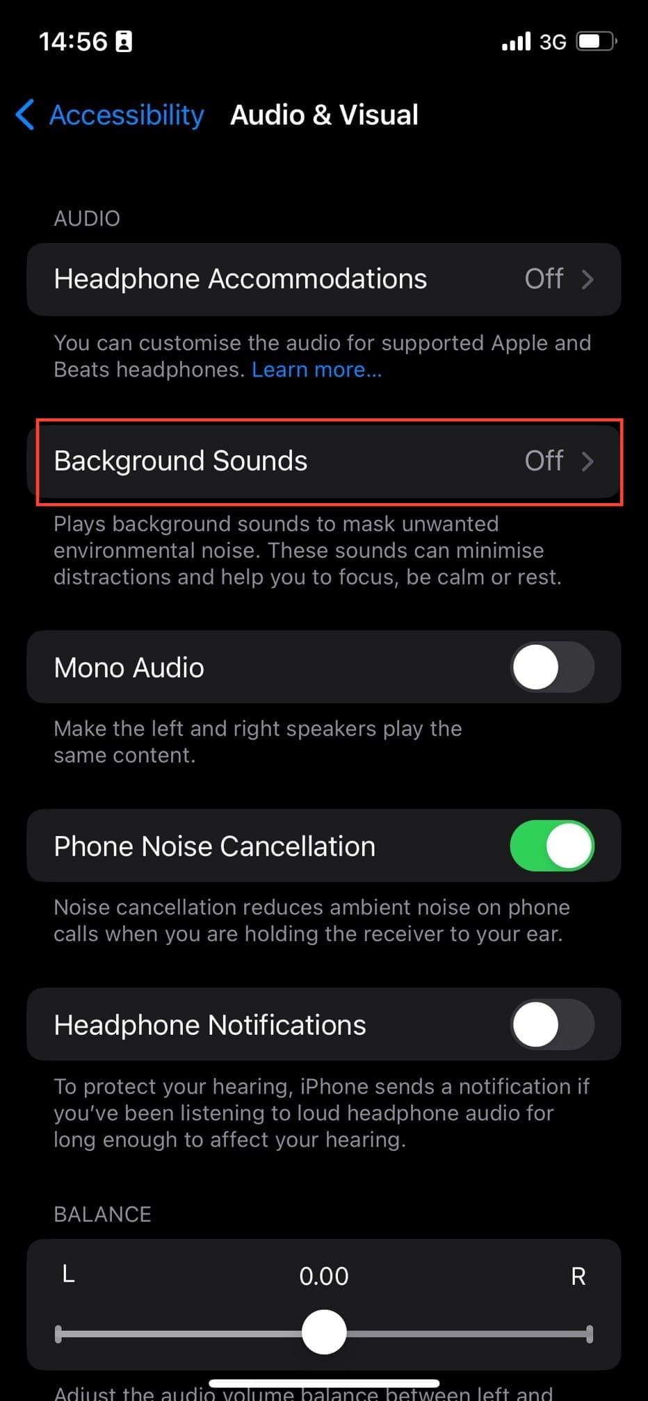 Step 4: At the top of the Audio/Visual menu, you’ll see Background Sounds; tap on it.