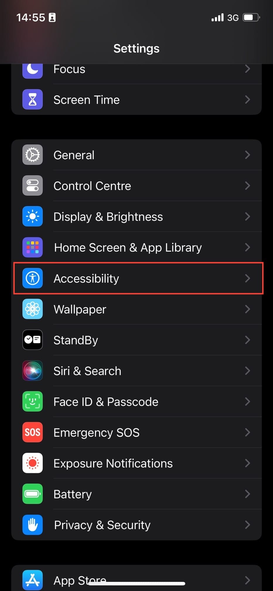 Step 2: Scroll down through the Settings menu and select Accessibility.
