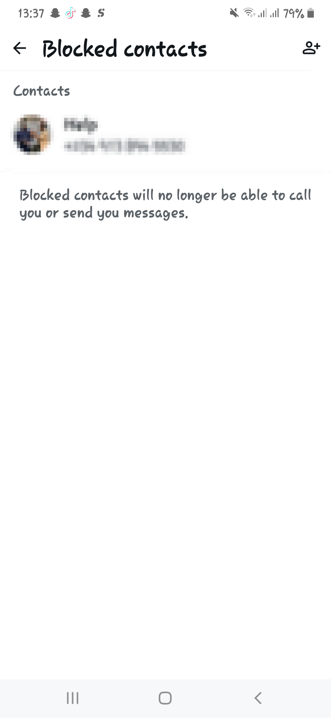 Step 5: You’ll see the full list of blocked contacts. Like on Android, you can tap on a contact to unblock them if needed