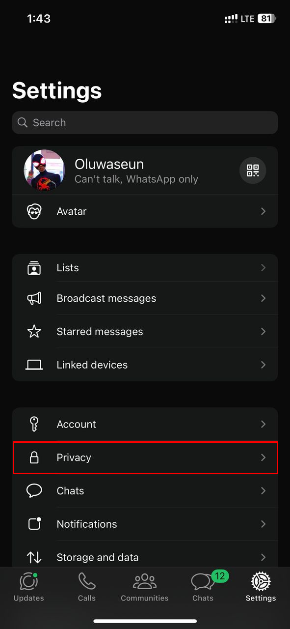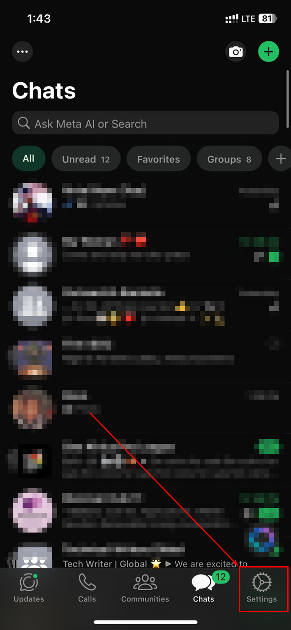 Step 1: Open WhatsApp and click the Settings icon at the bottom-right corner