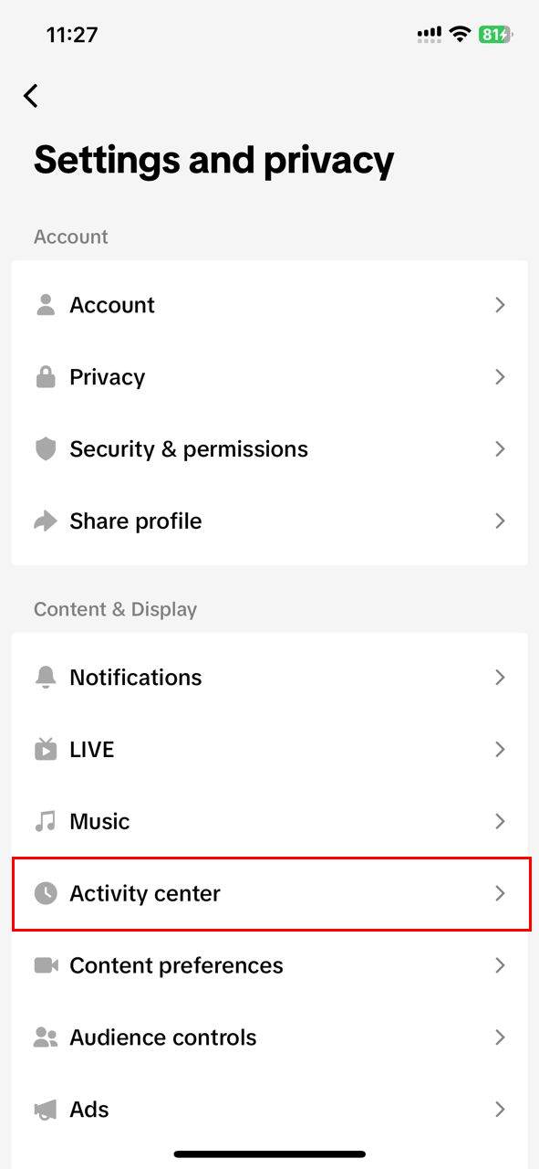 Step 4: Tap on "Activity center"