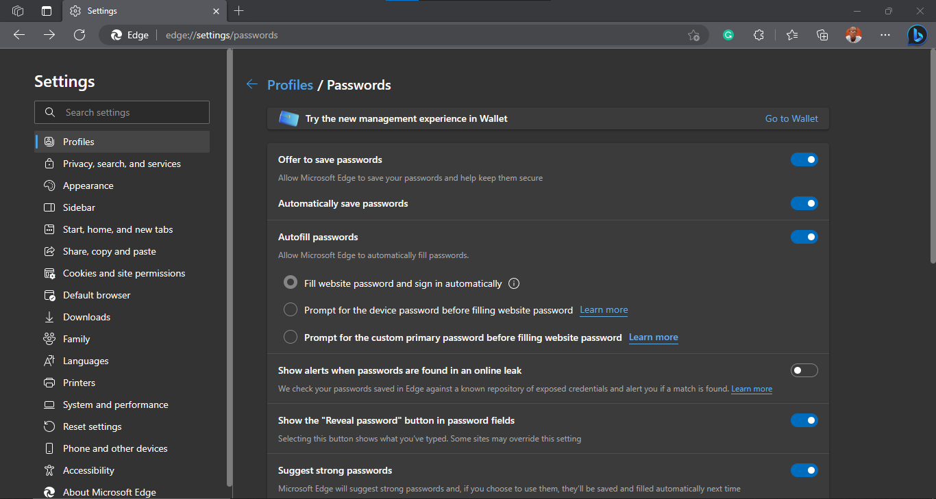 Just like other modern browsers, Edge provides a convenient built-in password manager that allows you to effortlessly save, view, and manage your online passwords, offering enhanced security and ease of use.