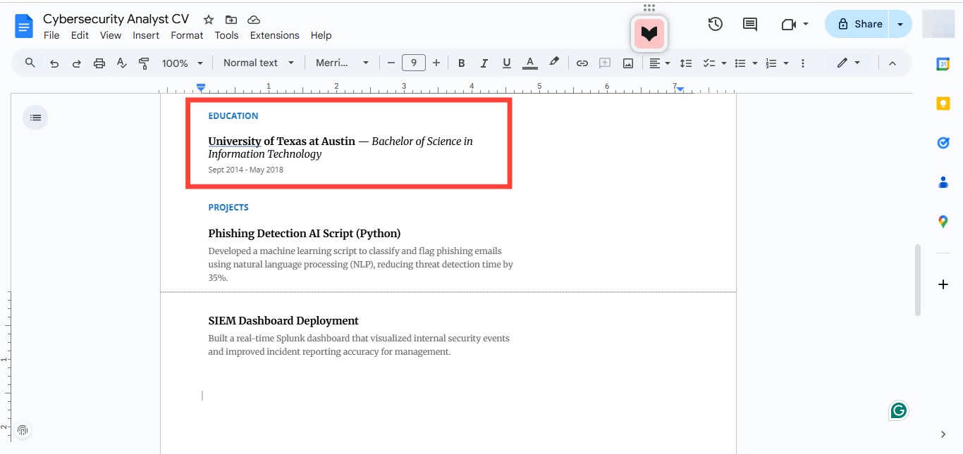 Whether you're just starting out or already have years of experience, your education still plays a key role in how your resume is assessed, especially by ATS software. For entry-level cybersecurity roles, having a relevant degree can be a minimum requirement. For seasoned professionals, it’s more about checking the box to confirm you meet the baseline qualifications.