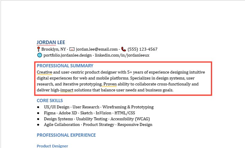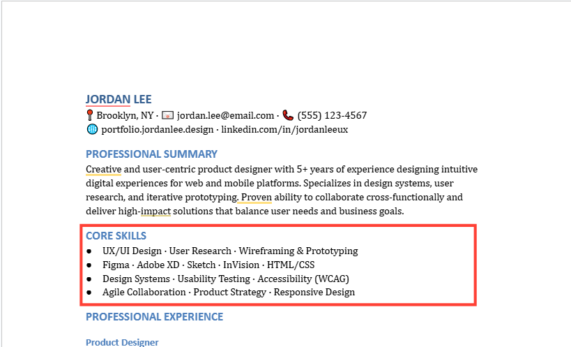 If a job ad mentions “user research,” “design systems,” or “responsive design,” and you have those skills, mirror those exact phrases in your resume. Not forced, but woven naturally into your experience. Think of this as SEO for your career.