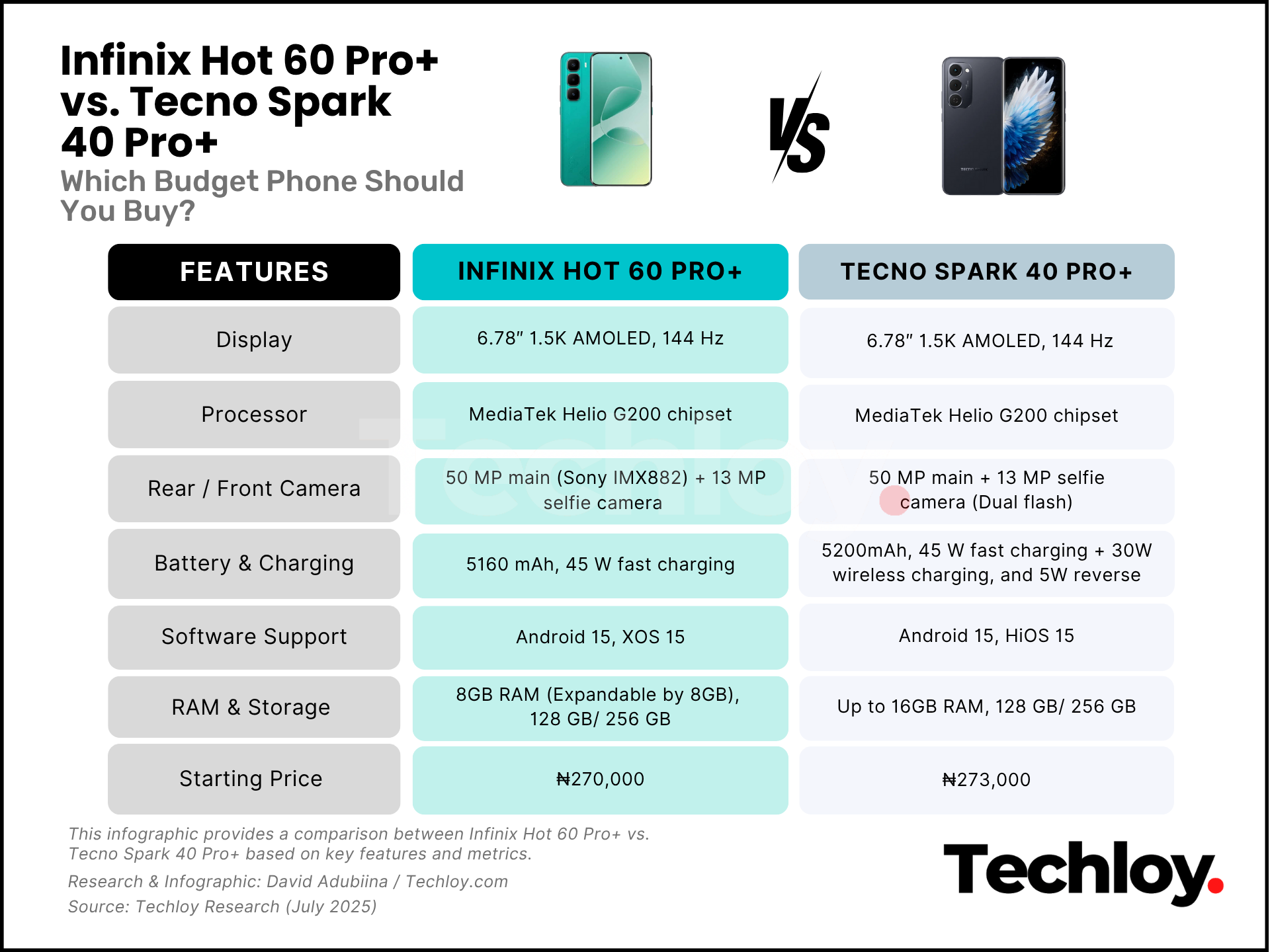 This shift has more buyers geared toward budget phones that can still handle everyday tasks. That’s why new budget releases like the Infinix Hot 60 Pro+ and Tecno Spark 40 Pro+ are getting more attention.