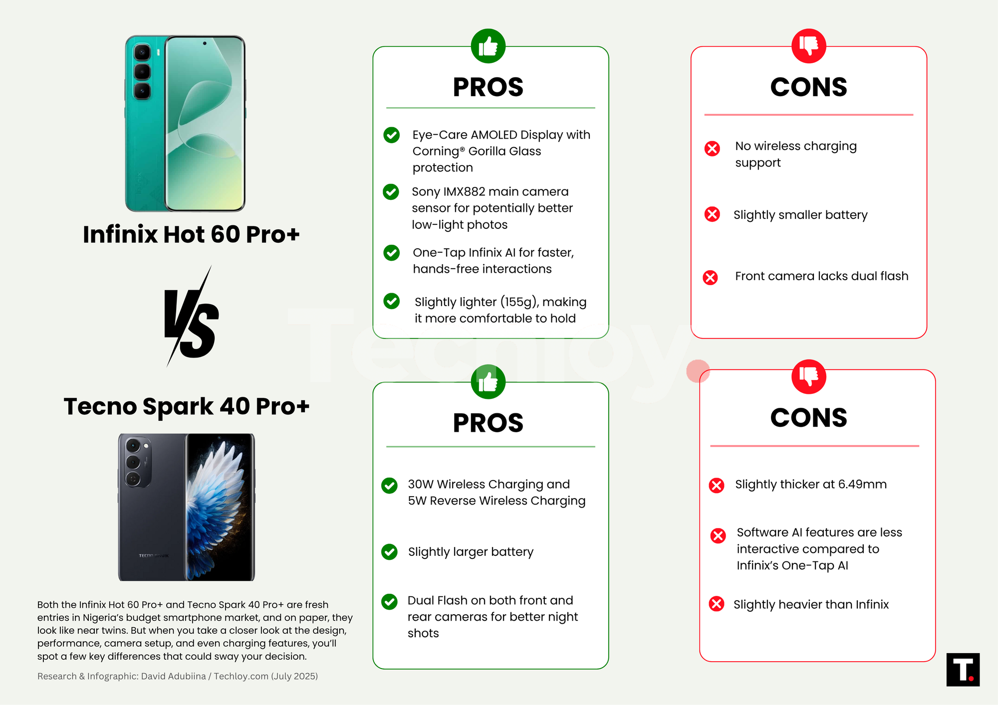 But if practicality matters more to you, Tecno’s Spark 40 Pro+ is hard to ignore. With more usable RAM and the bonus of wireless and reverse charging, it’s built for multitaskers and anyone who prefers ditching cables.