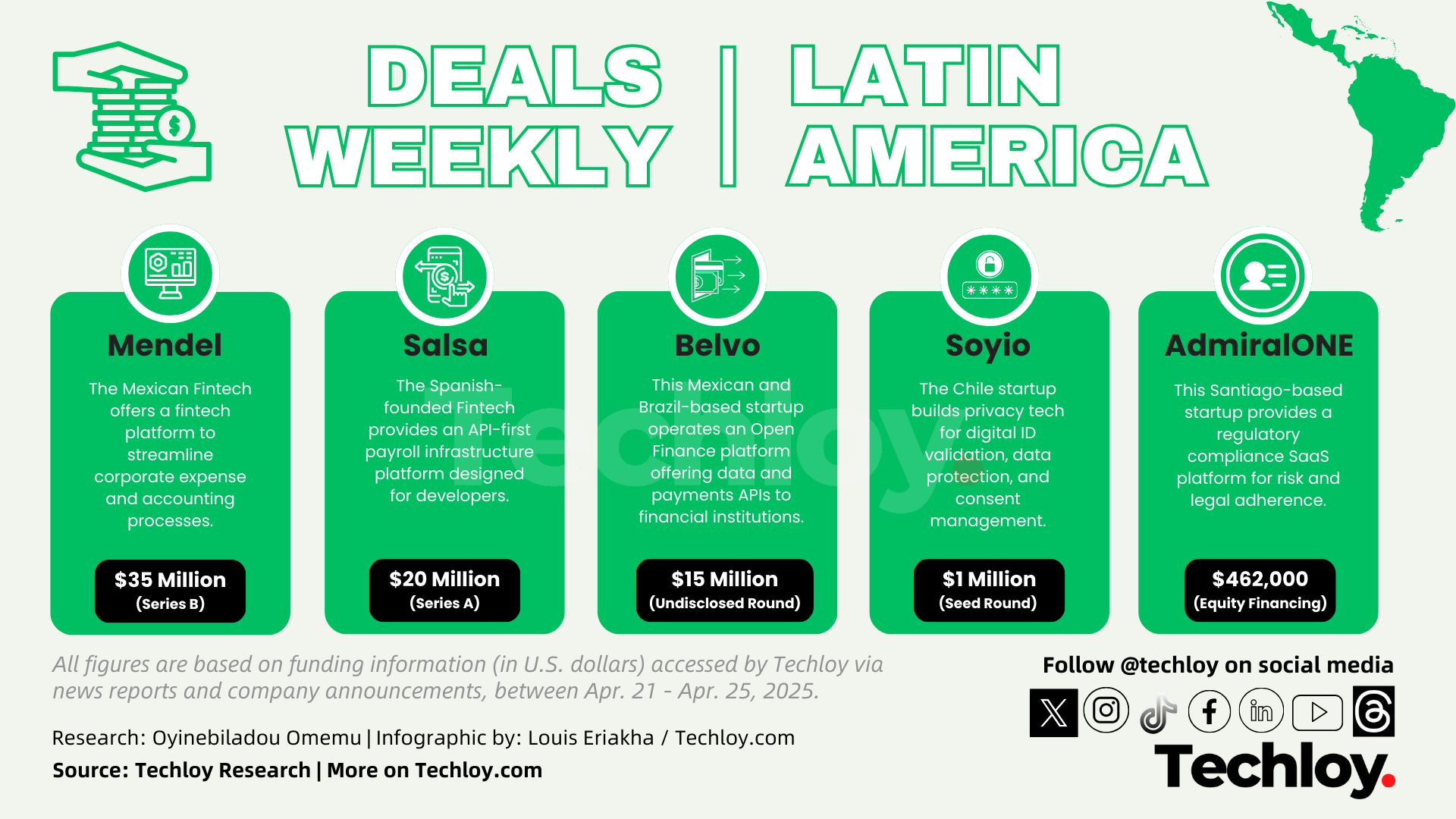 Leading this week’s announcements was Mendel, a corporate fintech platform founded by four Argentine entrepreneurs and based in Mexico. Mendel raised $35 million in a Series B round co-led by Base10 Partners and PayPal Ventures, with participation from Endeavor Catalyst. With over 100 enterprise clients, including McDonald’s and Mercado Libre, Mendel plans to deepen its footprint in Latin America’s business finance ecosystem.