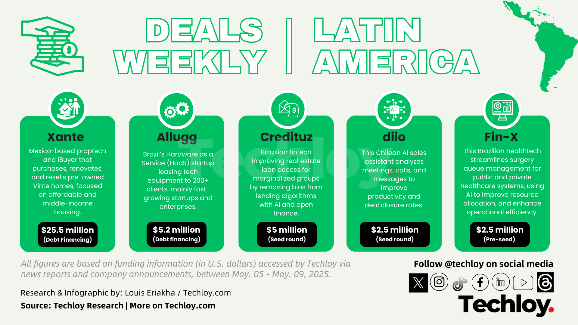 In this week's funding deals, we tracked Xante, Allugg, Credituz, diio, and Fin-X in the LatAm region.