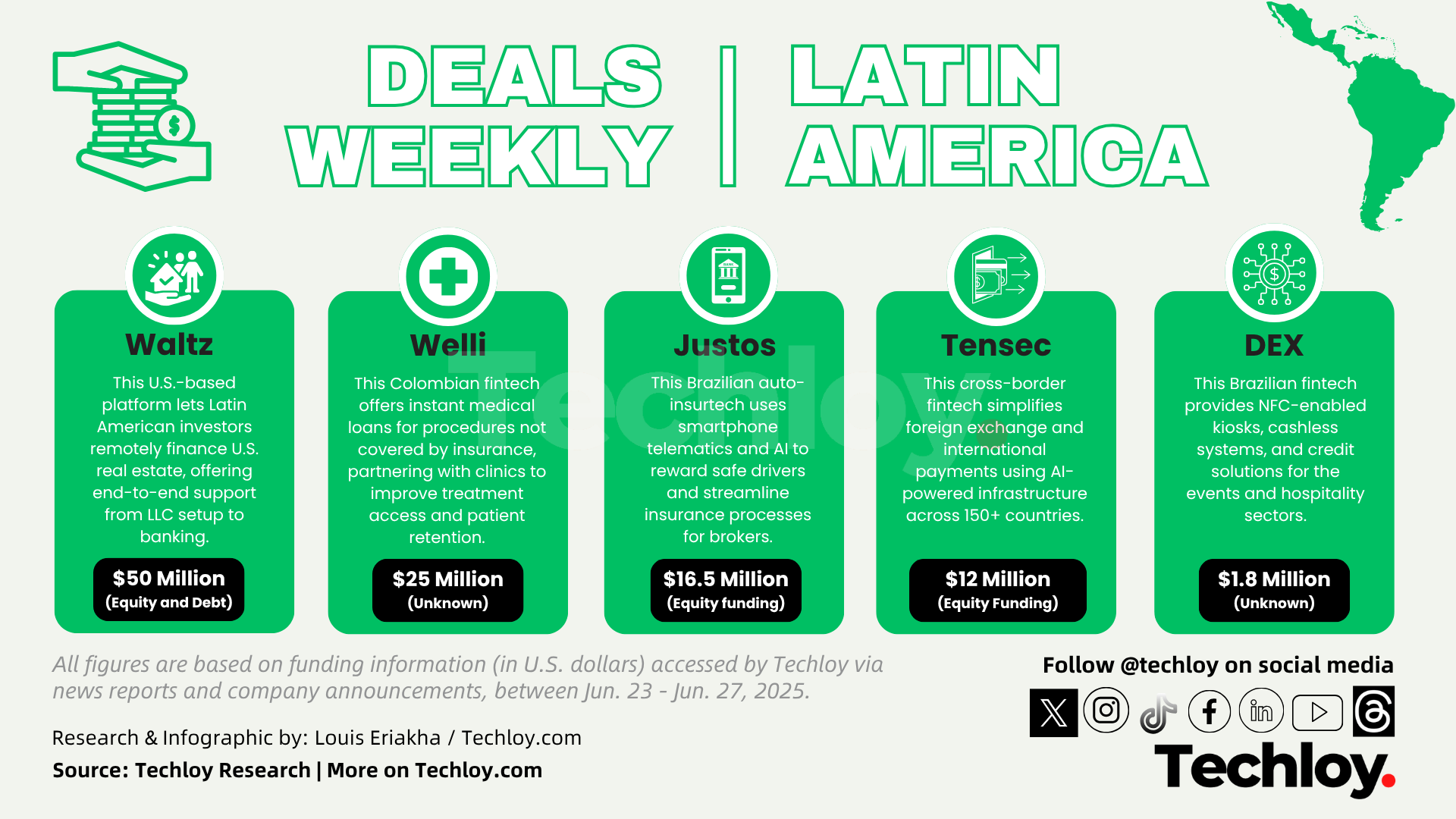 Finally, Brazilian event fintech DEX secured $1.8 million in initial funding, part of a deal that could unlock up to $9.1 million more upon meeting growth benchmarks. The investment, led by Grupo Loc and advised by Pulse Capital, will go toward tech upgrades, franchise expansion, and working capital for receivables financing. DEX operates across 20 Brazilian states, powering 46 million transactions annually with its NFC-enabled kiosks, cashless systems, and credit solutions for the entertainment and hospitality industries.