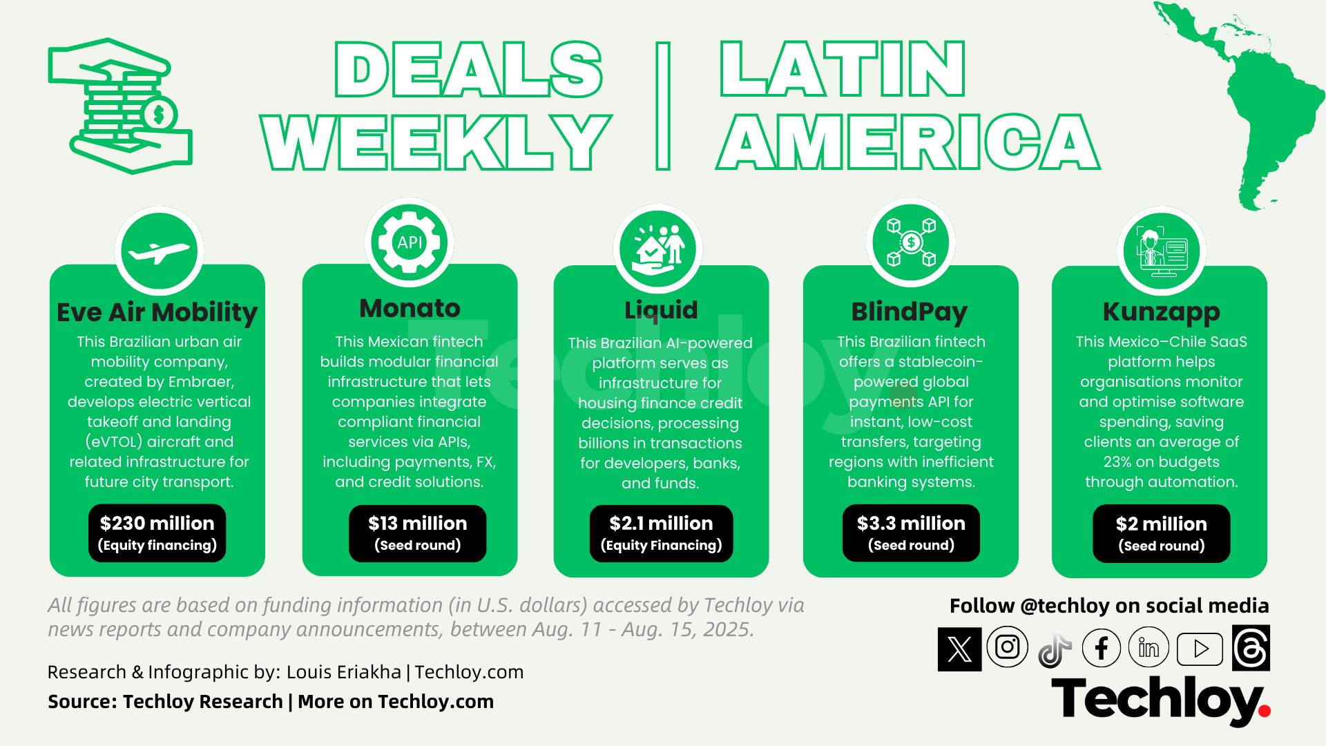 Latin American startups raised over $250 million this week across urban air mobility, fintech, AI credit infrastructure, payments, and SaaS cost optimisation. From electric aircraft to stablecoin-powered transfers, investors are backing platforms solving infrastructure gaps in high-growth markets.
