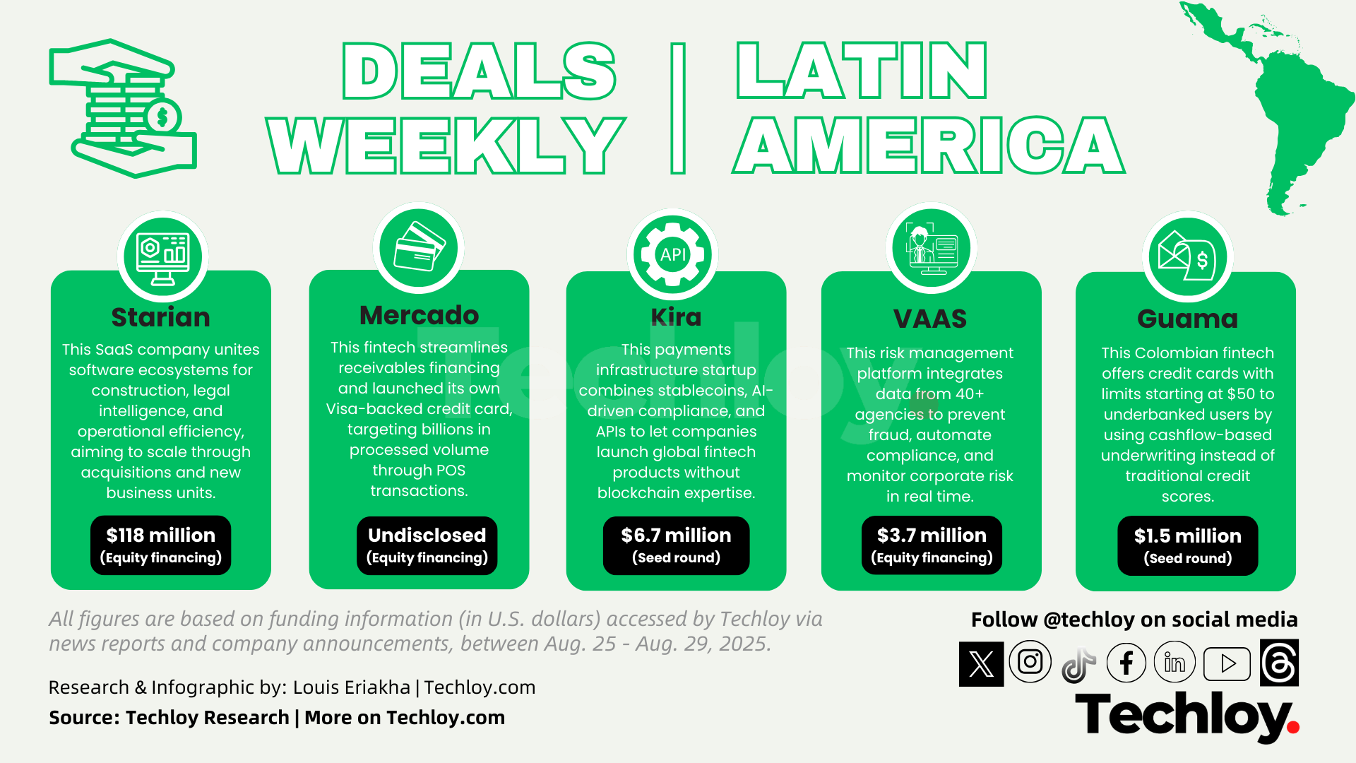 And finally, Colombian fintech Guama raised $1.5 million in a seed round led by Salkantay Ventures, with participation from Story Ventures, Hustle Fund, and Techstars. Founded in 2023 by former Nubank employees Maria Paula Pinzón, Alfredo Prieto, and Víctor Julio, Guama provides credit cards with limits starting at $50 to underbanked individuals without traditional credit histories by using cashflow-based underwriting. The company already has more than 6,000 active users and over 75,000 applications, processing $1.6 million in transactions to date.