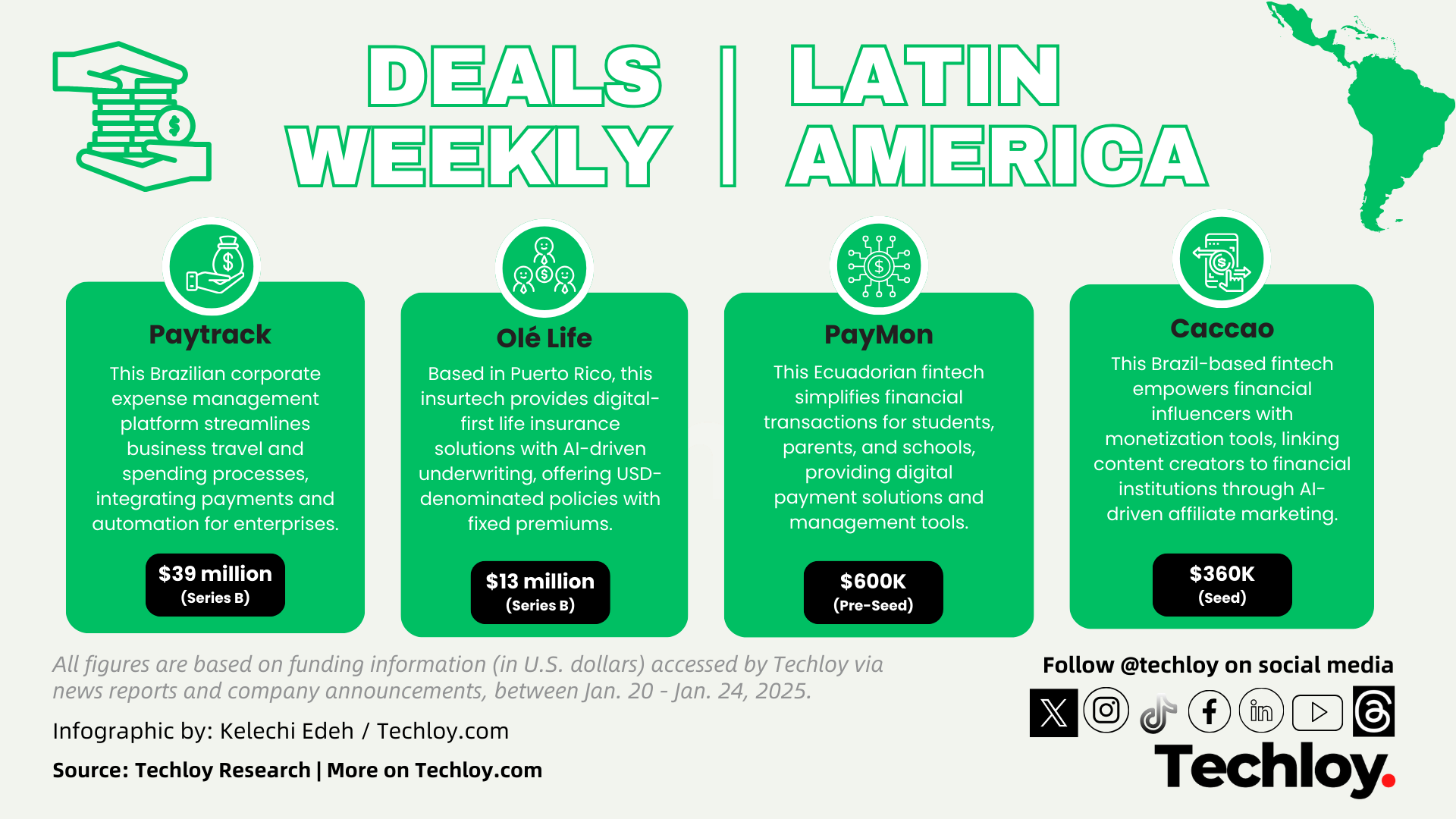 - Paytrack, a Brazilian travel and expense management platform, secured $39 million in Series B to expand enterprise solutions and integrate payment features.