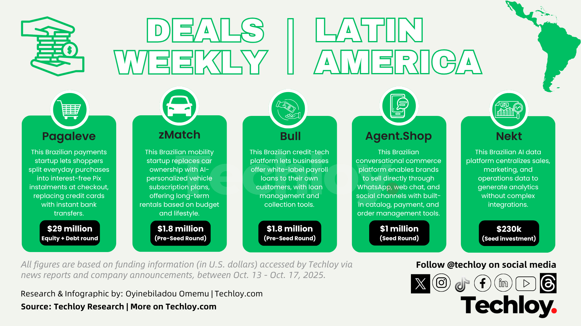 In this week’s funding deals, we tracked Pagaleve, zMatch, Bull, Agent.Shop, and Nekt in the Latin American region.