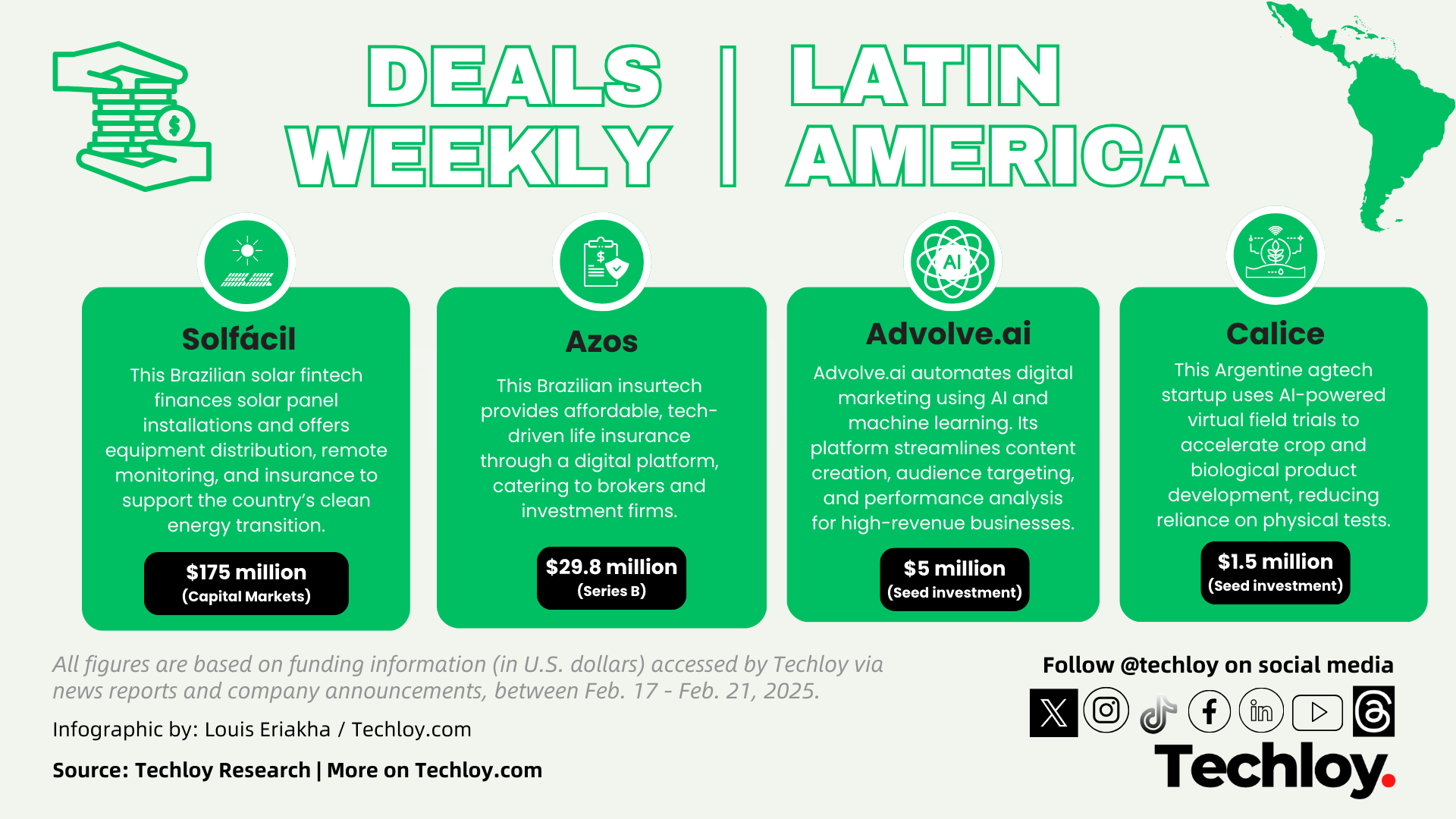 It was a relatively quiet week for startup funding in Latin America, but a few key rounds took place across sectors like solar energy, insurance, and agriculture technology. These investments highlight continued investor confidence in climate tech, fintech, and AI-driven solutions.