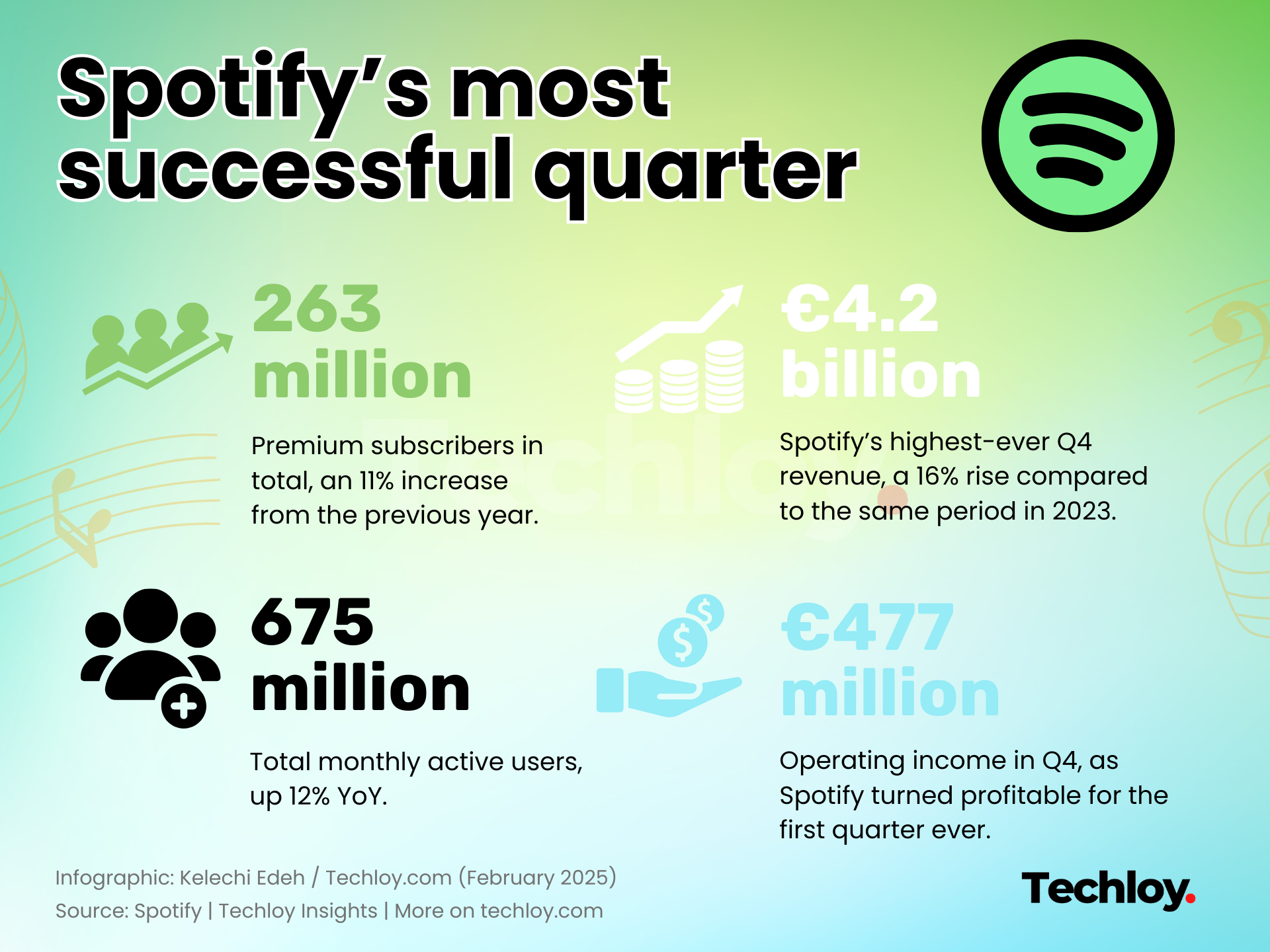Looking ahead, Spotify anticipates smaller user gains than in the most recent quarter, expecting to add 2 million more Premium subscribers in the first quarter of 2025, and bringing in another €4.2 billion in revenue. Growth might not be as explosive as it was in previous quarters, but if 2024 proved anything, it’s that Spotify has figured out how to win—not just by streaming music, but by becoming something much bigger.