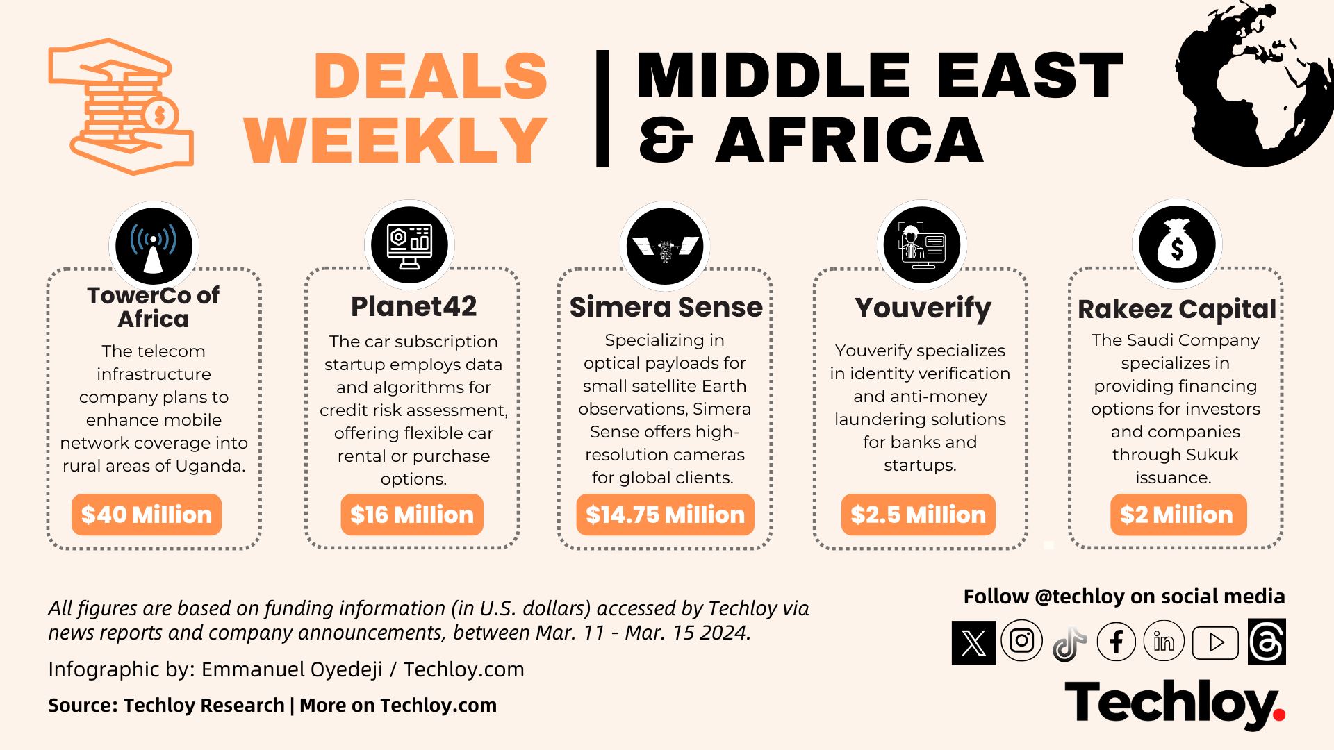 - Lagos-based identity verification company, Youverify has secured $2.5 million in pre-Series A funding, led by Elm Investment, a Saudi-born investment firm focusing on technology ecosystems in the MENA region.
