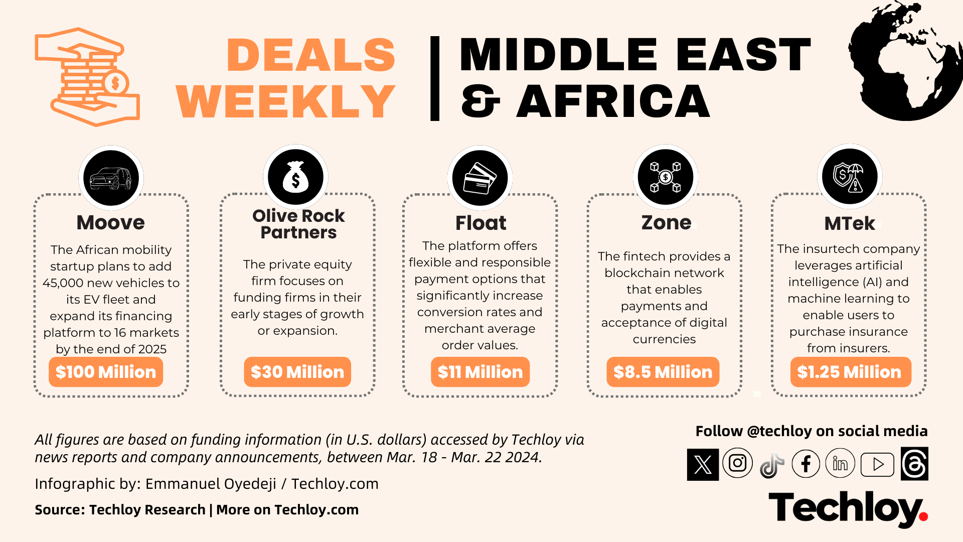 Here are the venture funding activities we tracked in the Middle East and African region this week – including Nigeria’s Moove, Olive Rock Partners, Float, zone, and MTek.