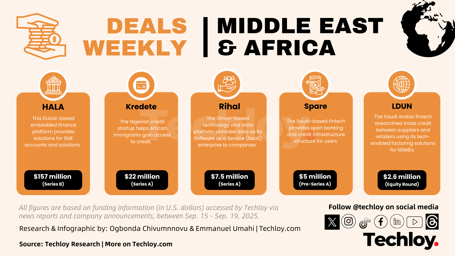 Take Hala in Saudi Arabia, for example. The embedded finance leader raised a jaw-dropping $157 million Series B, one of the largest fintech rounds ever in the Middle East. Over in Nigeria, Kredete is tackling one of the hardest problems for African immigrants, access to credit. Their $22 million Series A, led by AfricInvest, signals strong belief in a problem that has real global resonance.