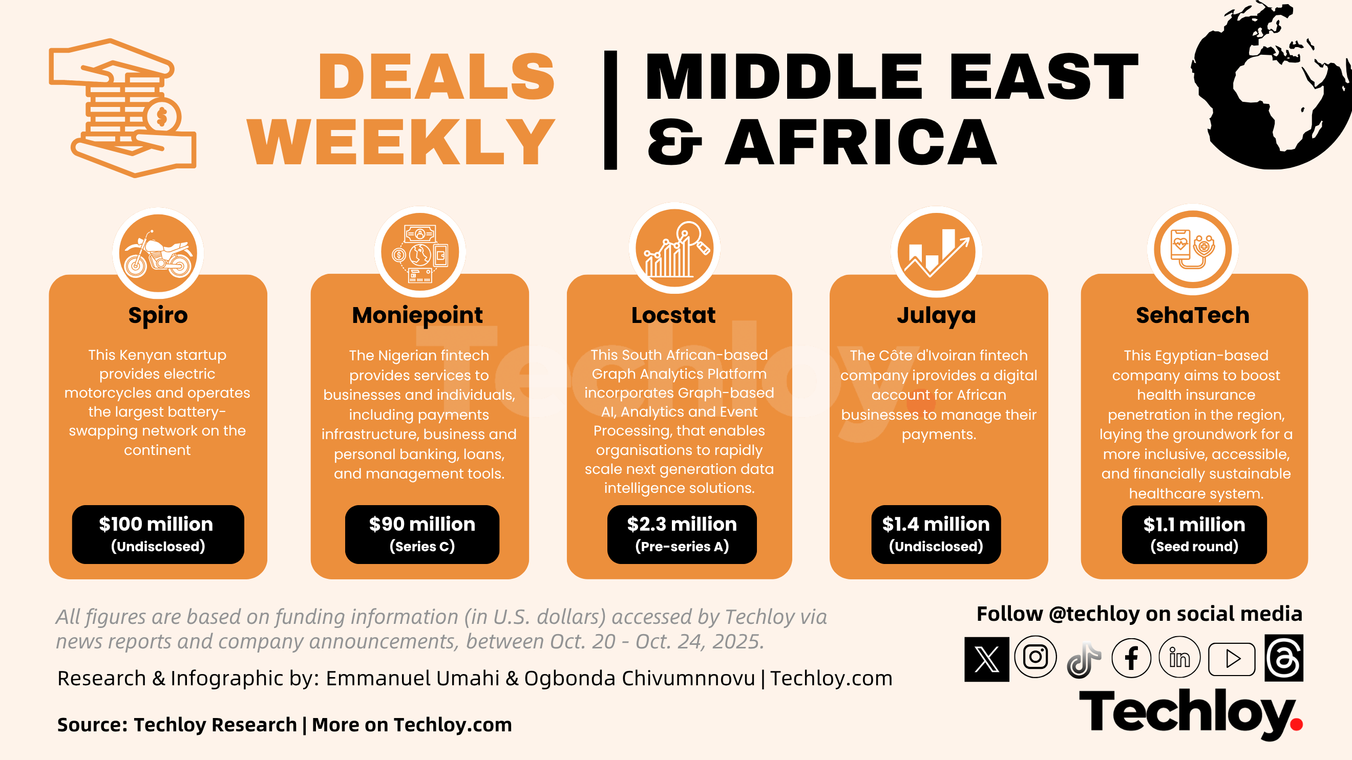 Further south, South African AI startup Locstat closed $2.3 million in a pre-Series A round to expand its data analytics and decision intelligence platform into the UK and EU markets. Over in Côte d’Ivoire, fintech company Julaya secured $1.4 million to accelerate its regional expansion, support new product development, and scale client acquisition as it continues redefining digital payments for African enterprises.