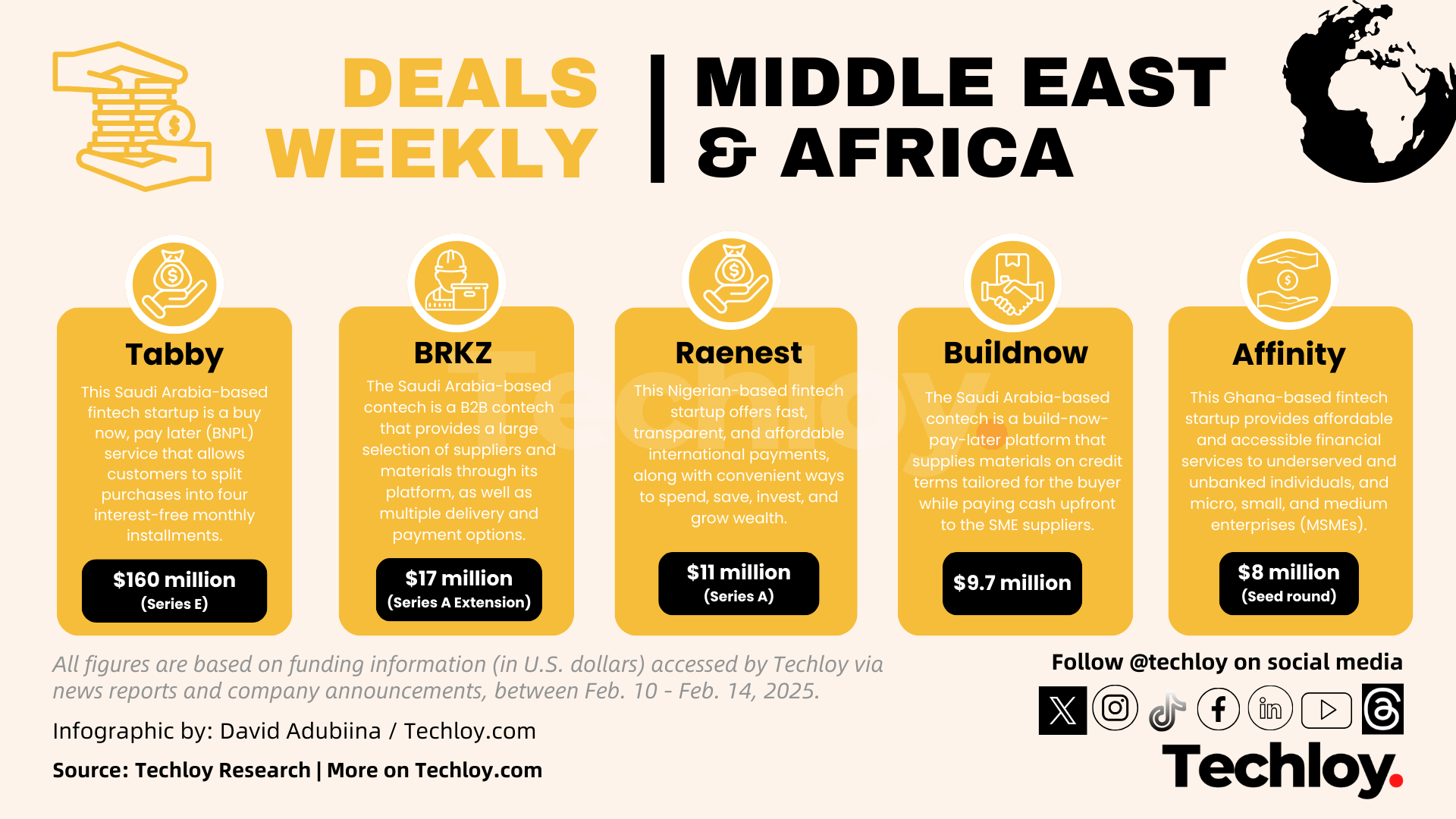 In another construction tech win, Buildnow, a Saudi-based contech landed a $9.7 million investment, led by STV, to drive efficiency in the sector. Ghana’s fintech Affinity also made headlines with an $8 million seed round from European VCs to scale digital banking in a market dominated by mobile money—a strong indicator of fintech’s continued relevance across Africa.